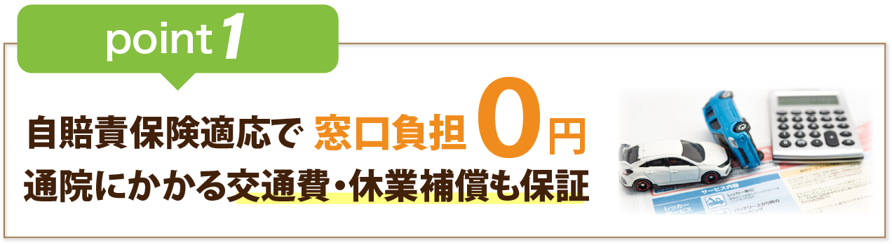 施術料は自賠責保険による保険適用で、窓口負担は0円です。